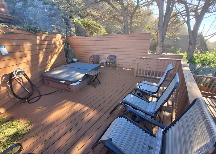 Offering a Jacuzzi for a relaxing experience, Oceanview Cabin 19,Jacuzzi, Large Deck W Seating Villa is located a 10-minute ride from Oregon's Largest Monterey Cypress.